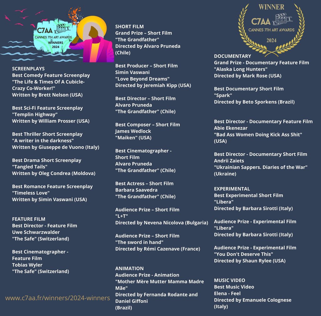 WINNERS OF THE CANNES 7TH ART AWARDS 2024