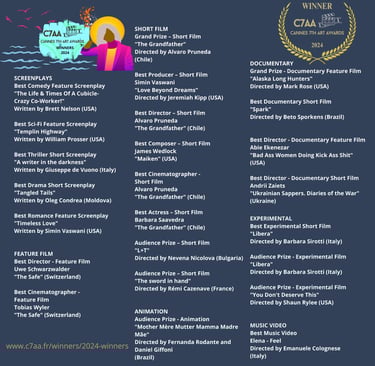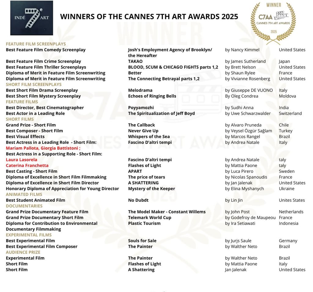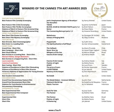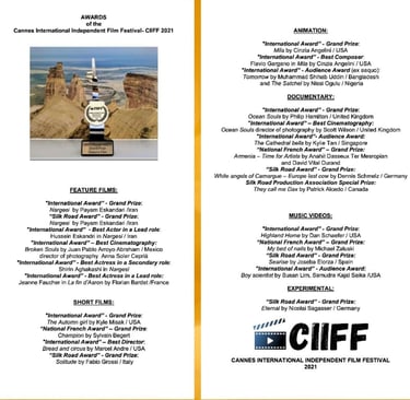 WINNERS OF THE CANNES 7TH ART AWARDS 2021 (formerly Cannes International Independent Film Festival-CIIFF)